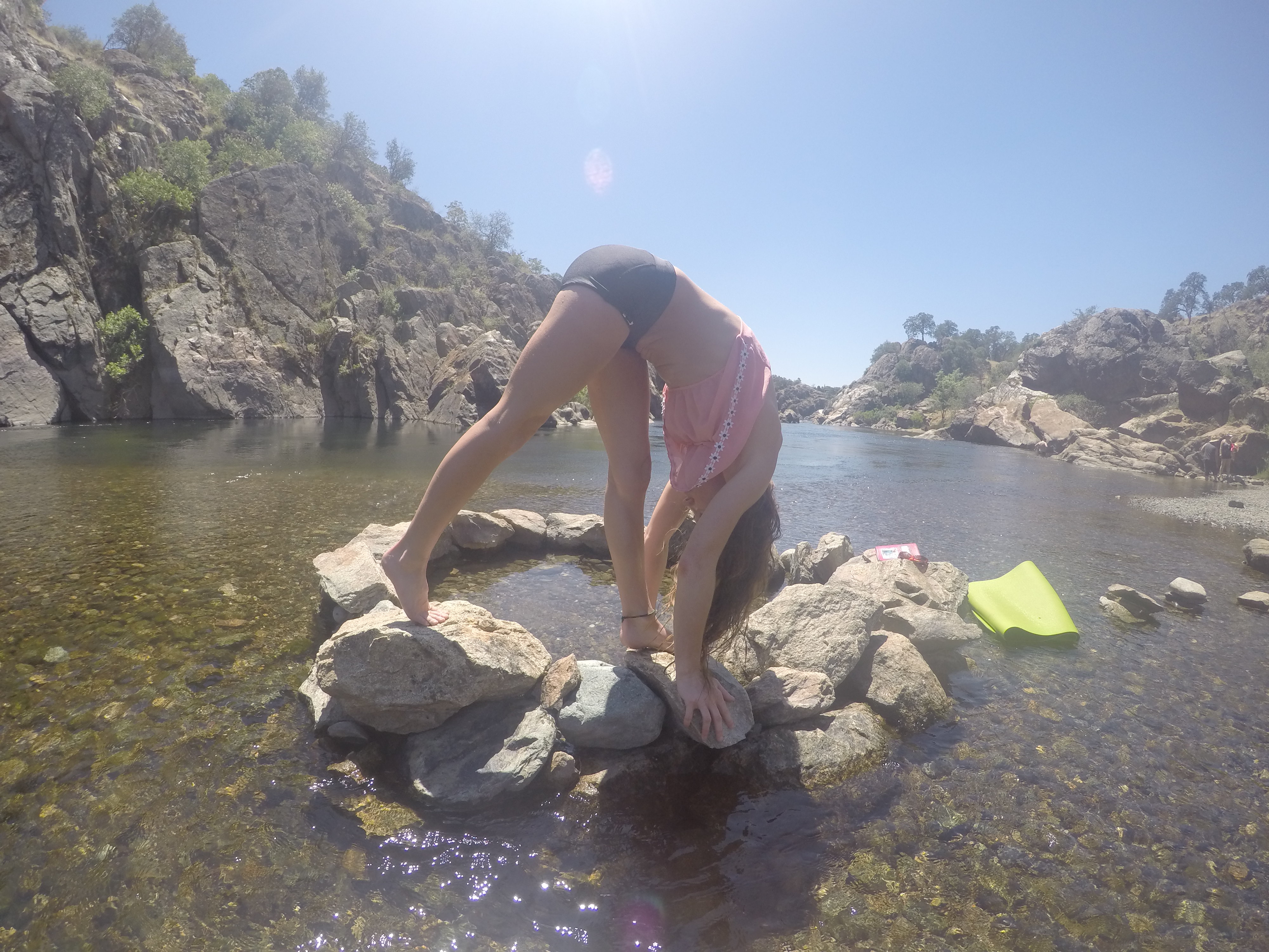 58. Reversed seated twist- planting hands & angling top foot align with them – reach arm closest to legs for the extended foot- ground in alternate foot and hand and lift the stretched leg off the ground. (I have no idea the name for that, but it was fun, new and I liked it)